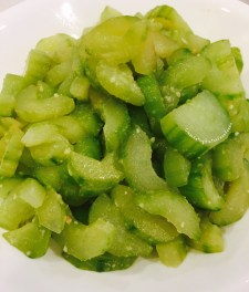 Many people think of cucumbers as something that you eat raw on your salad or toss into your smoothie. You can actually do so much more with it and I mean more than just place cucumber slices over eyes on a spa day. In Chinese cuisine, we actually sautée the cucumbers. As a child, my ma would make this dish at least once a week. It was a quick and an easy way to get something green on the table. With literally a handful of ingredients, the result is a light and delicious dish that goes well with your brown rice or as a side. Not only is this dish yummy, it is economical and very easy to make. This recipe brings a smile to my face, as I remember having it as a child when ma would make it.